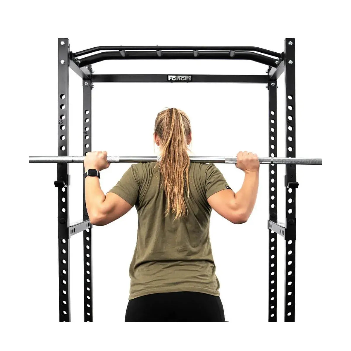 With dimensions of 215 cm height 121 cm width and 121 cm depth the Force USA PT V2 Power Cage delivers maximum strength in a compact footprint. The 50 mm by 50 mm steel tubing construction ensures long term stability and durability even under heavy load.